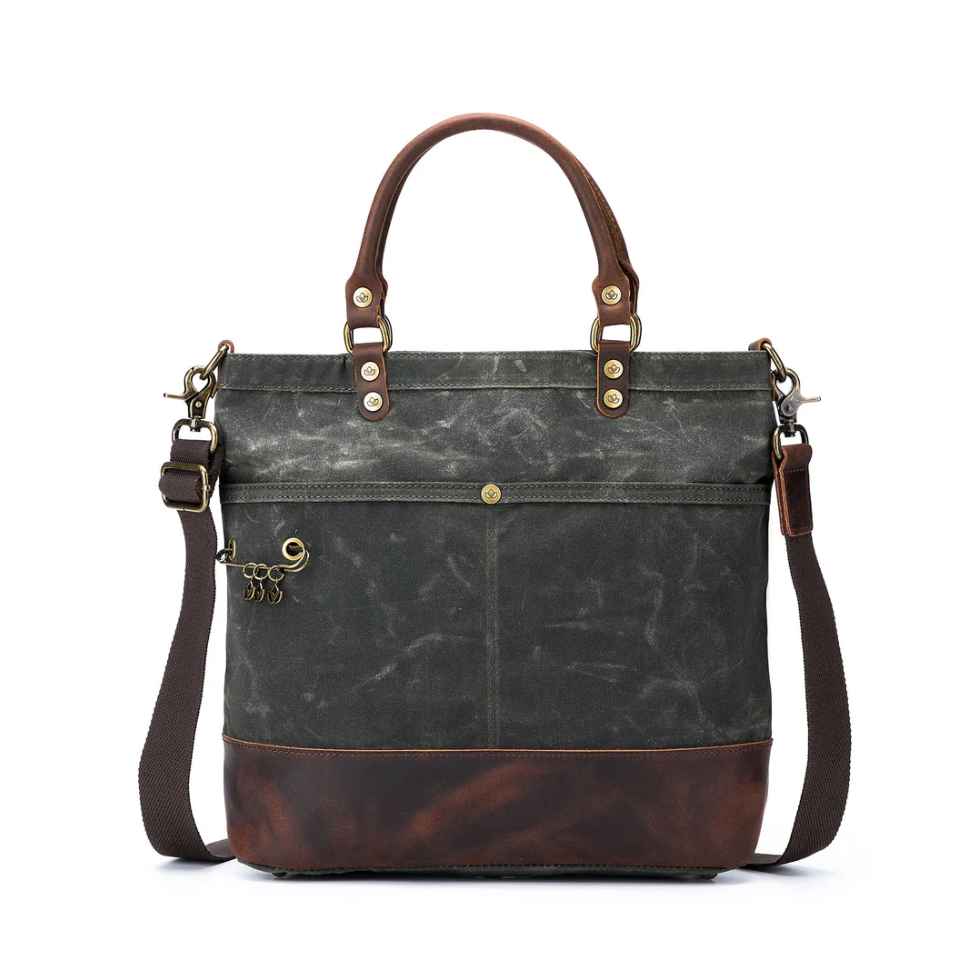The della Q Maker's Canvas Tote combines a chic design and functional features with enough space to hold your yarn, needles, pattern, and so much more. The rustic genuine leather accents scar beautifully with time and the waxed canvas makes it unique to you. The Tote is eye-catching with a cozy, color-blocked aesthetic that carries your goods with ease.