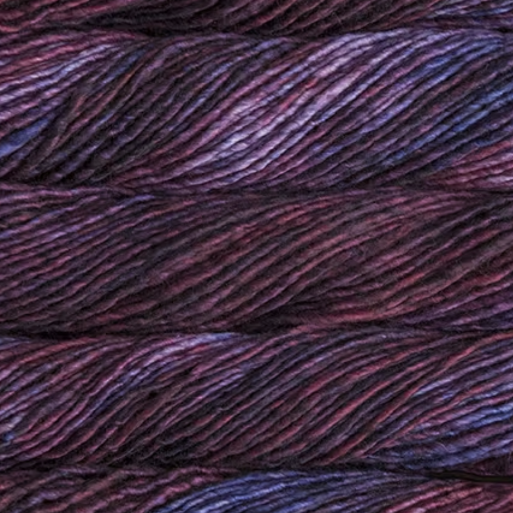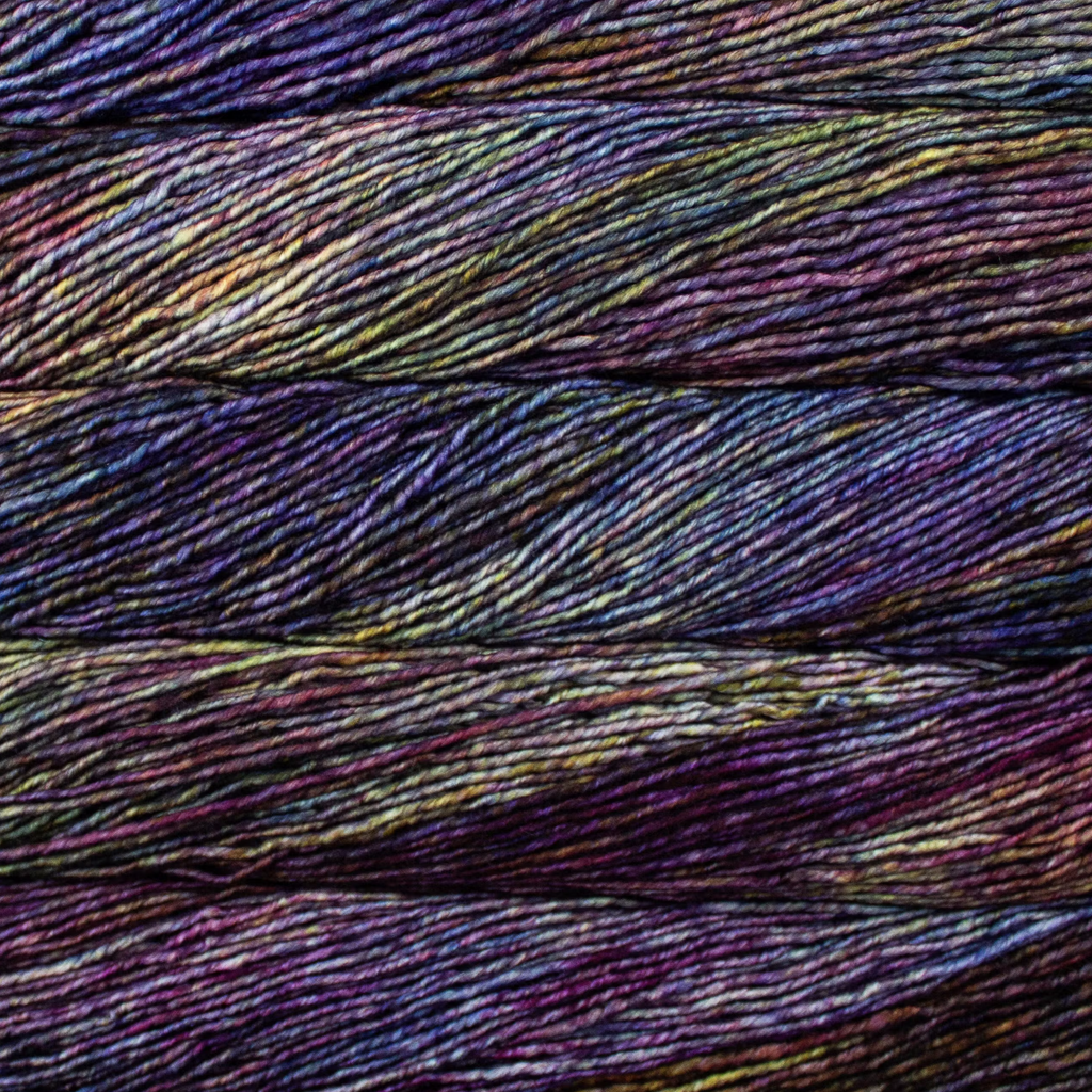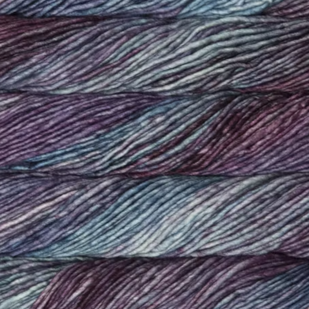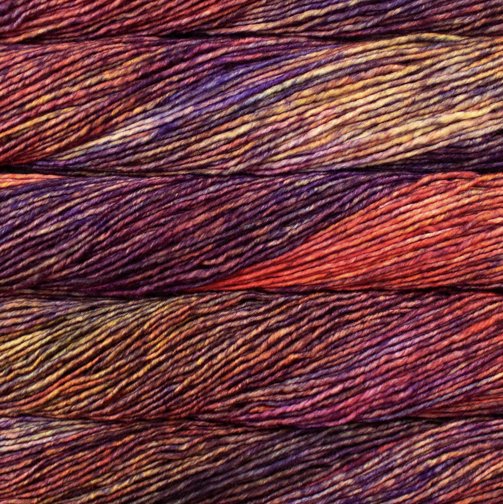 This chunky weight, single-ply superwash merino yarn is a knockout! Incredibly soft with glowing colors, Mecha makes beautiful accessories - hats, cowls, scarves - and other garments that will not see a lot of wear. The single-ply makes this yarn more delicate than plied yarns, and it will age gracefully if it isn't subjected to rubbing or friction.