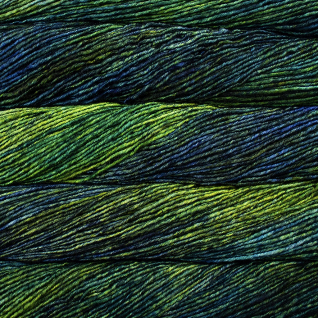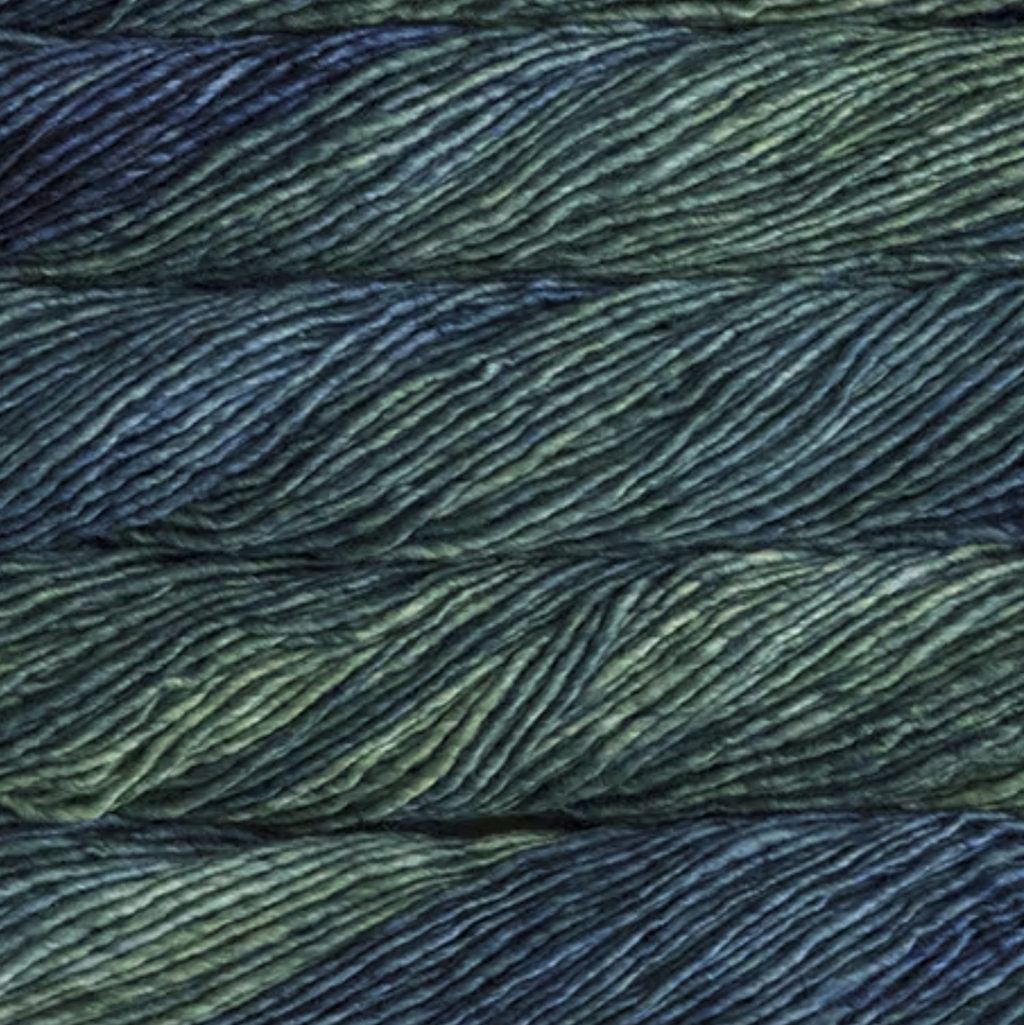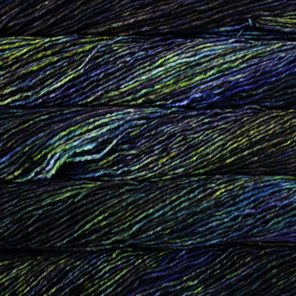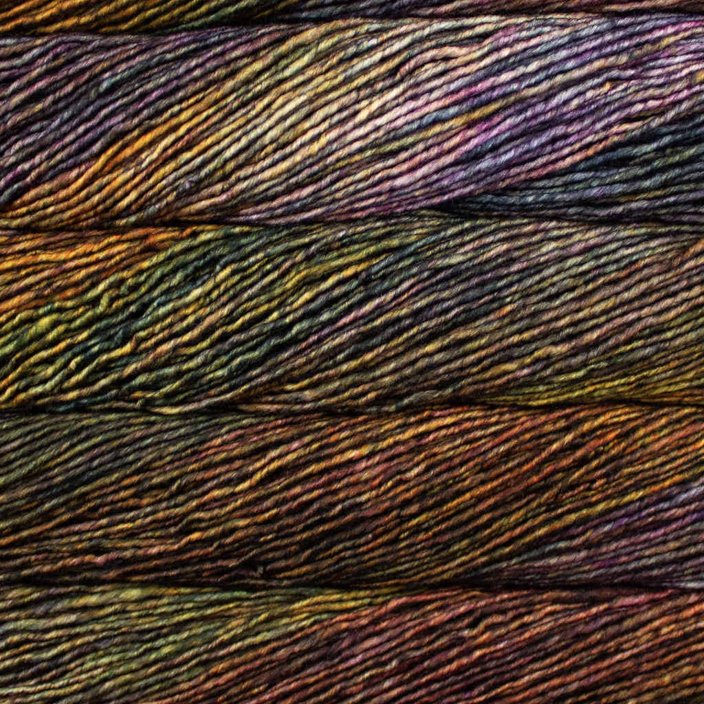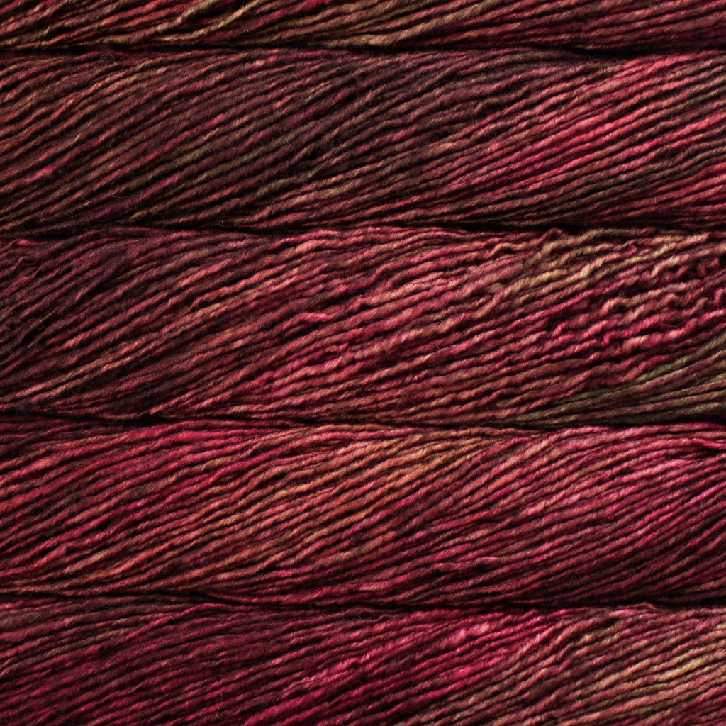 This chunky weight, single-ply superwash merino yarn is a knockout! Incredibly soft with glowing colors, Mecha makes beautiful accessories - hats, cowls, scarves - and other garments that will not see a lot of wear. The single-ply makes this yarn more delicate than plied yarns, and it will age gracefully if it isn't subjected to rubbing or friction.