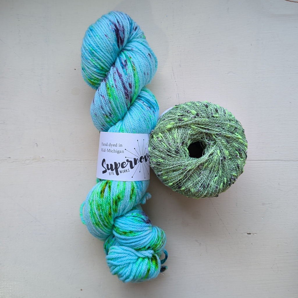 - Nashira Worsted, Supernova Dyeworks. 100% superwash merino wool. 115g / 210 yards.