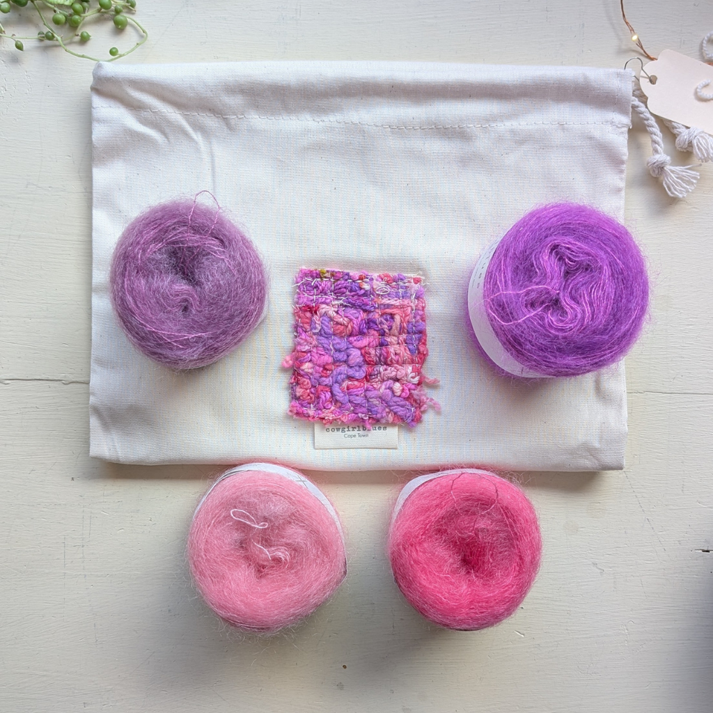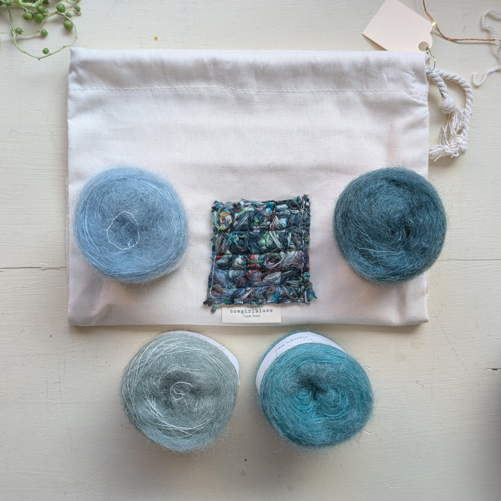 Each knit kit contains: 4 x 25g balls of Kidsilk, a project bag and a printed pattern. You will also need 6mm knitting needles, circular or straight will do, and a row counter may be useful.