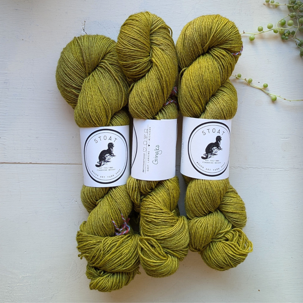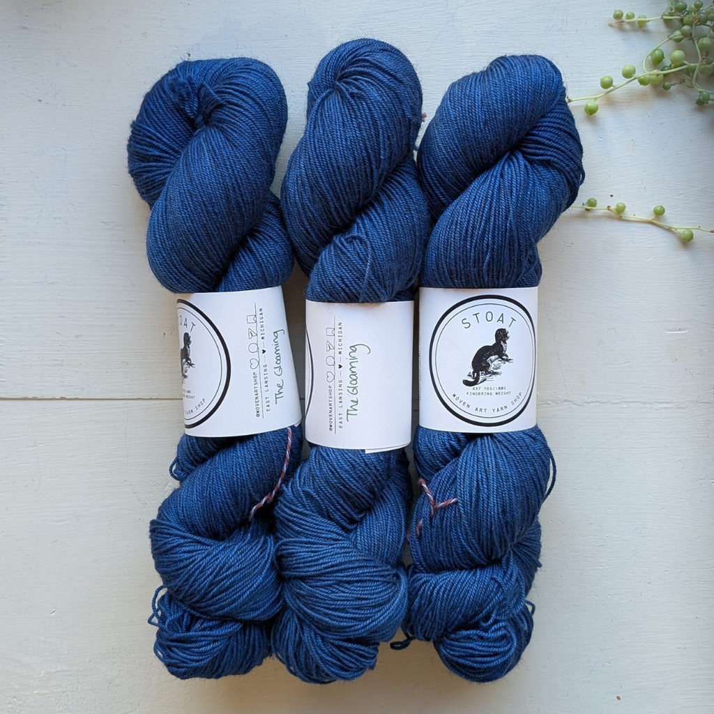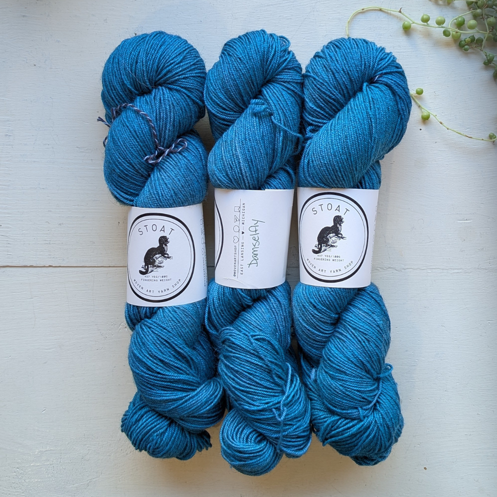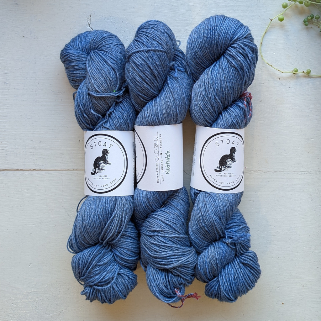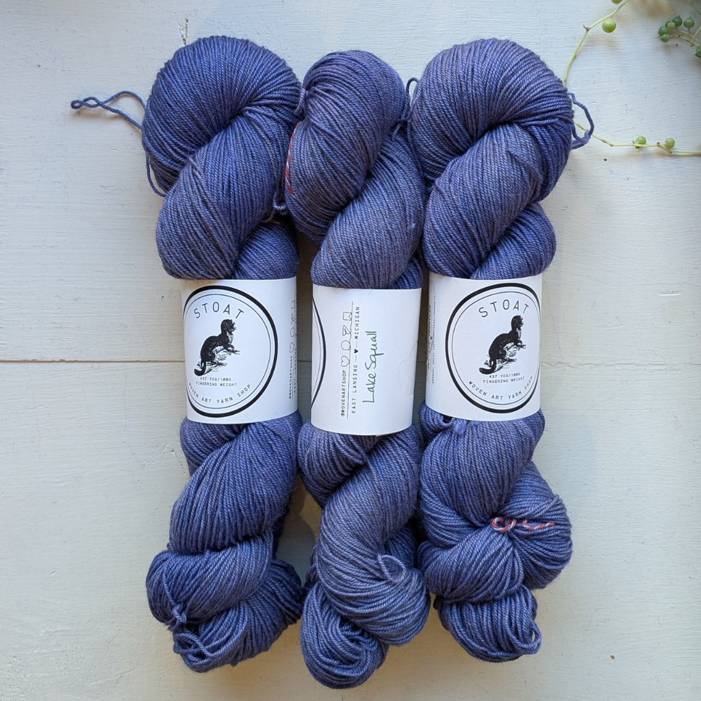 Hand dyed at Woven Art, Stoat is our luxurious fingering weight yarn.