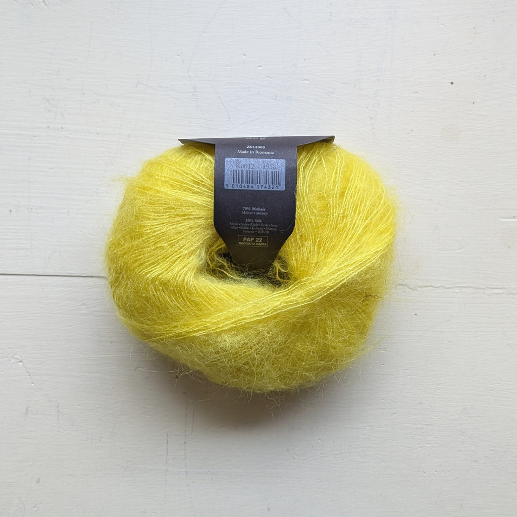 Ever-popular Kidsilk Haze combines the soft halo of super kid mohair with the vibrant shine of silk in one incredible yarn that is loved by knitters the world over. Kidsilk Haze can be used with a variety of needle sizes to create different effects and styles, and is a firm favorite with lace fans. Used alongside other yarns it takes on an almost magical quality, and is available in a kaleidoscopic array of stunning colors.