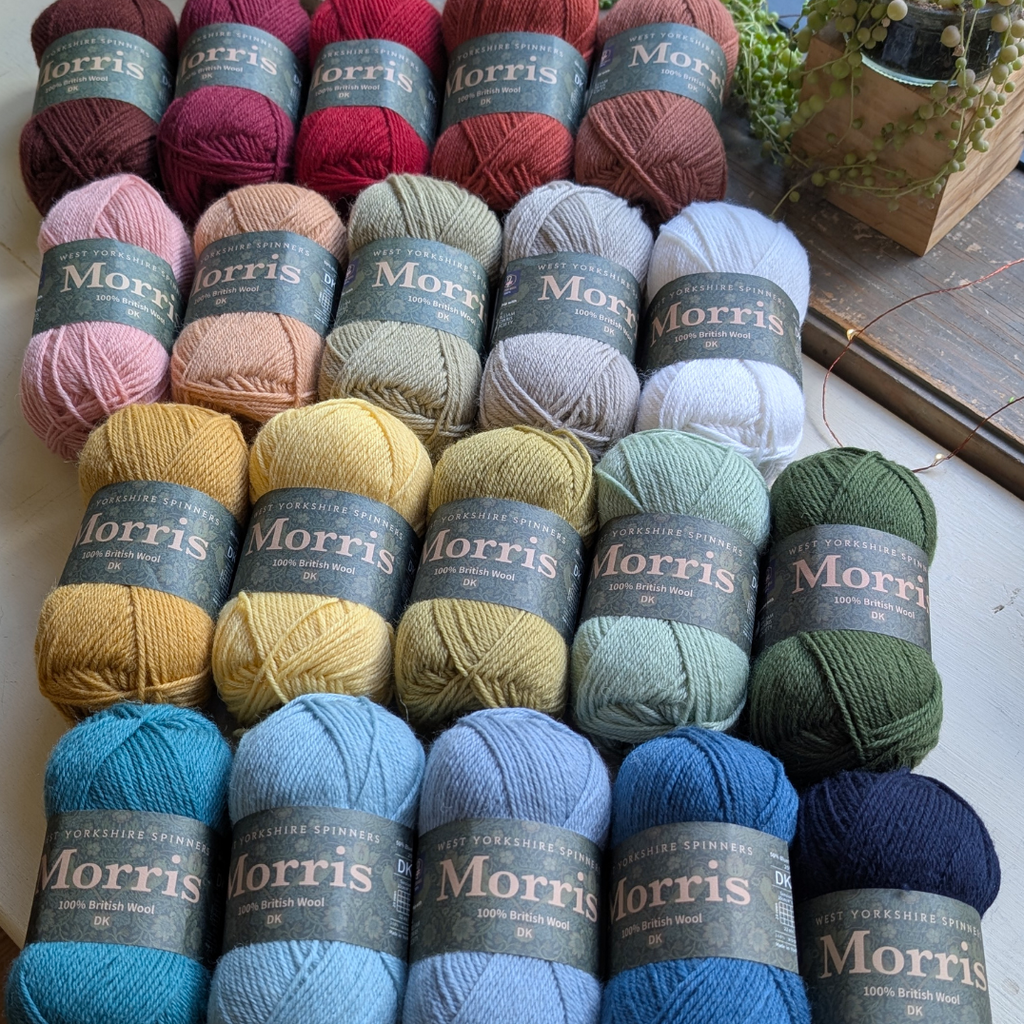 West Yorkshire Spinners collaborative yarn with the William Morris Society. Made using three quality British fleeces; lustrous and luxurious Bluefaced Leicester; soft and durable Bluefaced Kerry Hill, and the rustic and charming Masham.