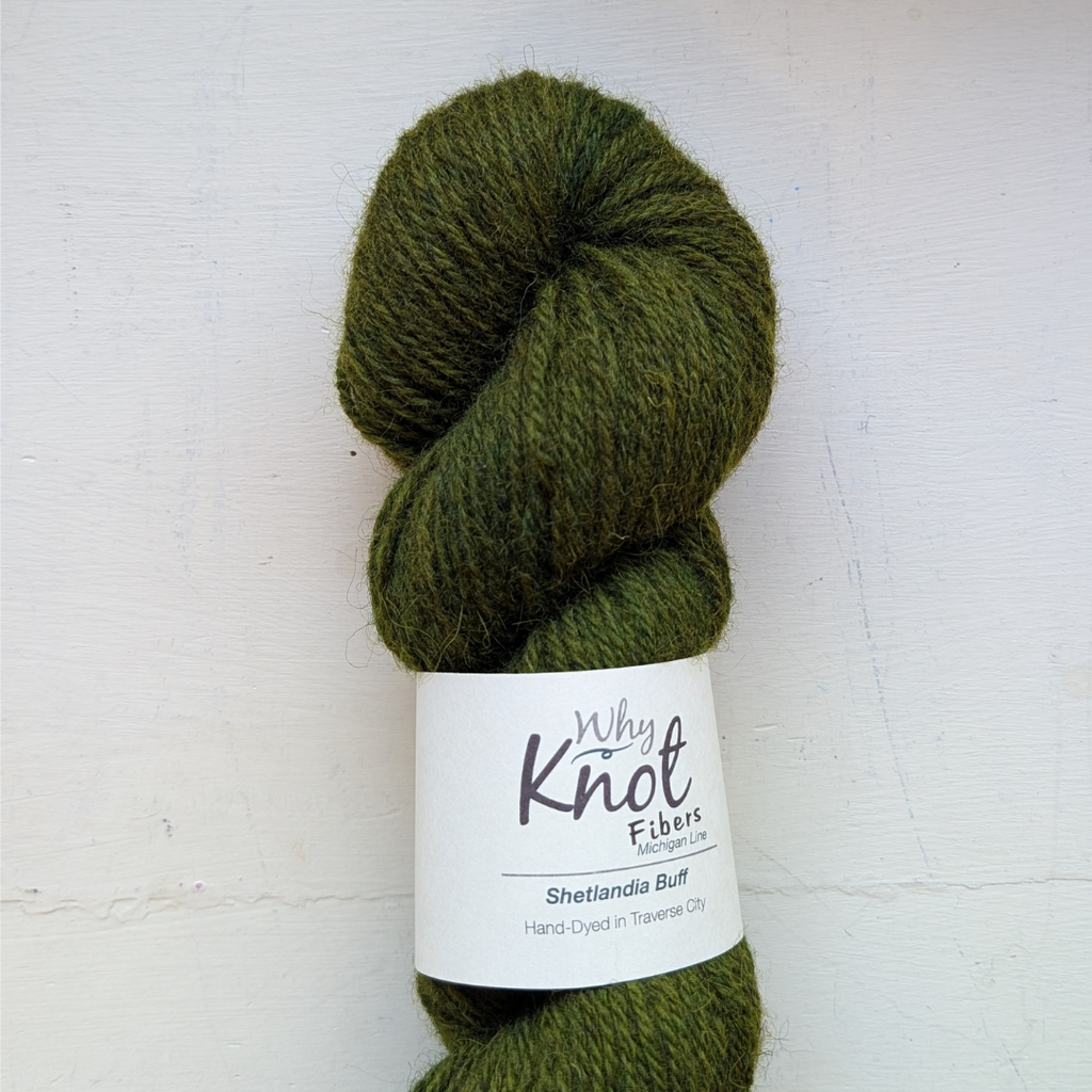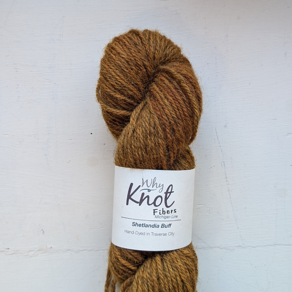 Both soft and wooly, Shetlandia Buff is grown, milled, and dyed in Michigan. Made of 100% Shetland Sheep wool in a natural buff color, Shetlandia Buff is available in its undyed color and a wonderful raindbow of hues from Why Knot Fibers.